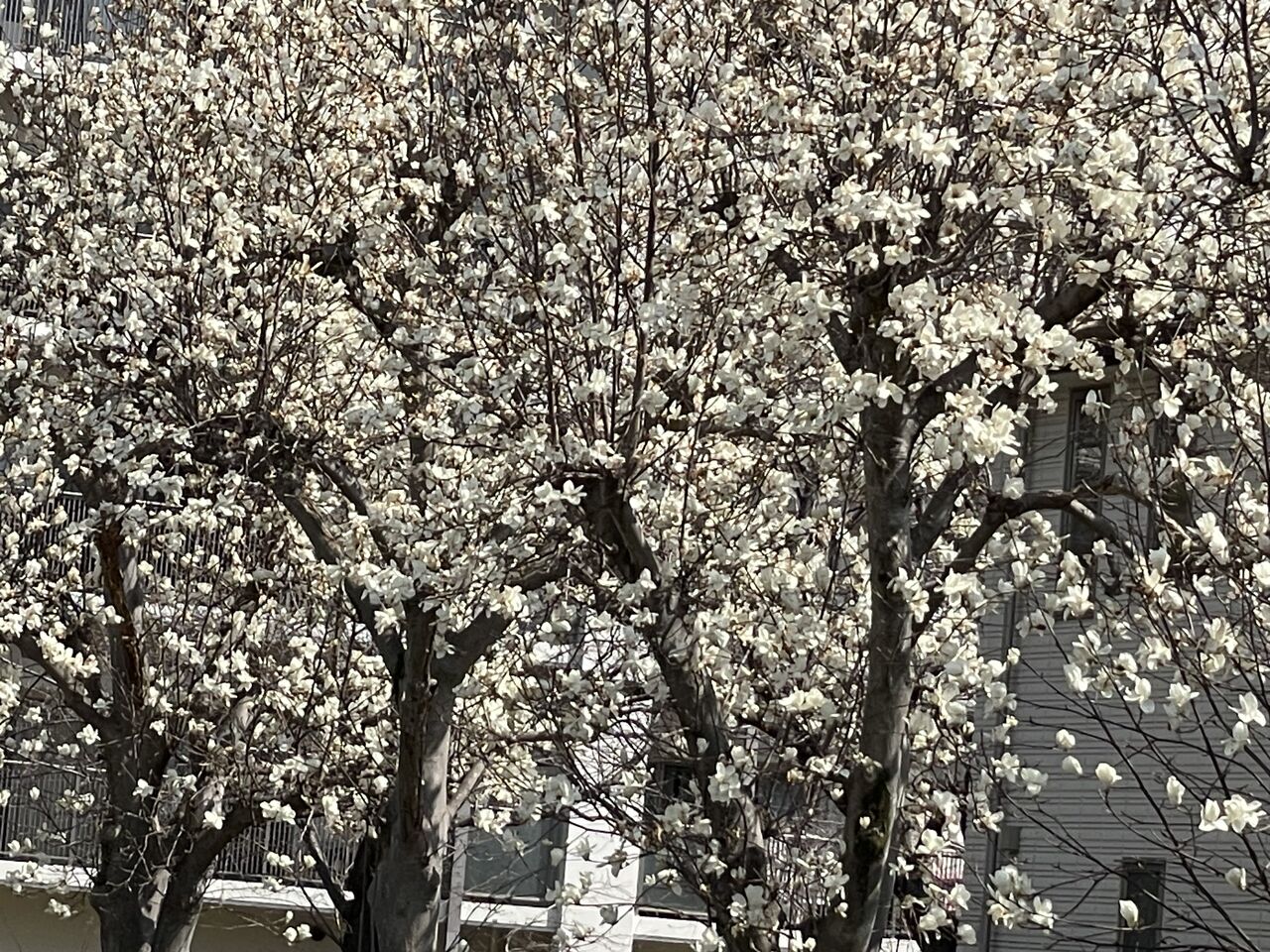 白木蓮の側の