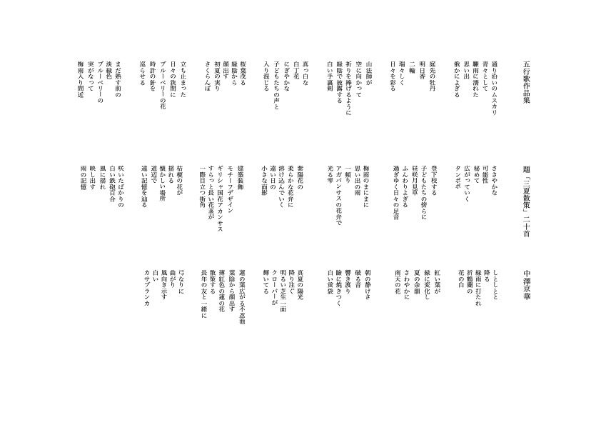 2024年07月18日 五行歌作品集「三夏散策」二十首 「三夏散策」二十首https://ameblo.jp/endlessletter-kyoka/entry-12860396224.htmlXへの自作五行歌ポスト(5/8~7/17)を題「三夏散策」二十首として纏めました。 < 前の記事次の記事 >
